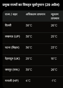 प्रमुख राज्यों का विस्तृत पूर्वानुमान (29 अप्रैल)